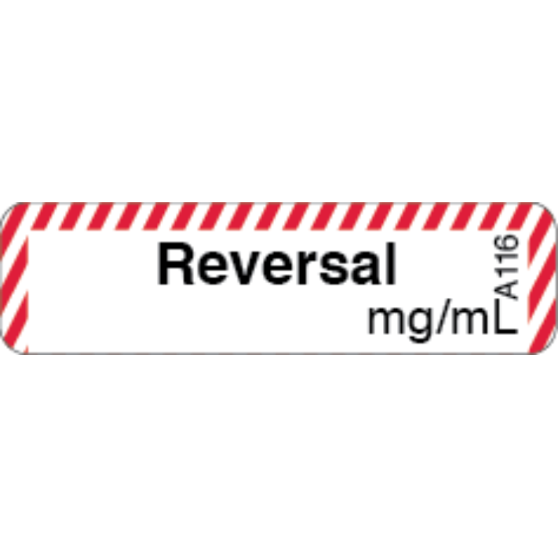 Reversal Labels Anaesthetic Labels 40 x 11mm WARM RED & BLACK ON WHITE