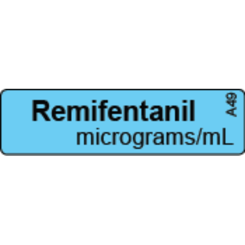Remifentanil Labels Anaesthetic Labels - 40 x 11mm BLACK ON PMS 297 BLUE