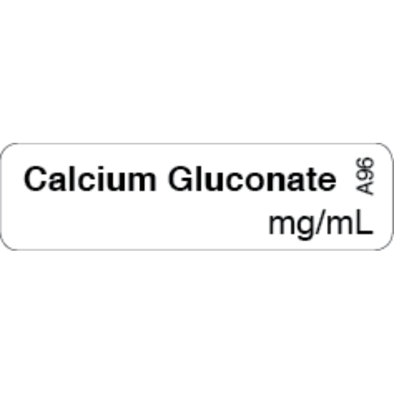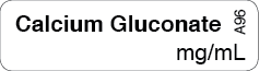 Calcium Gluconate Labels Anaesthetic Labels - 40 x 11mm BLACK ON WHITE