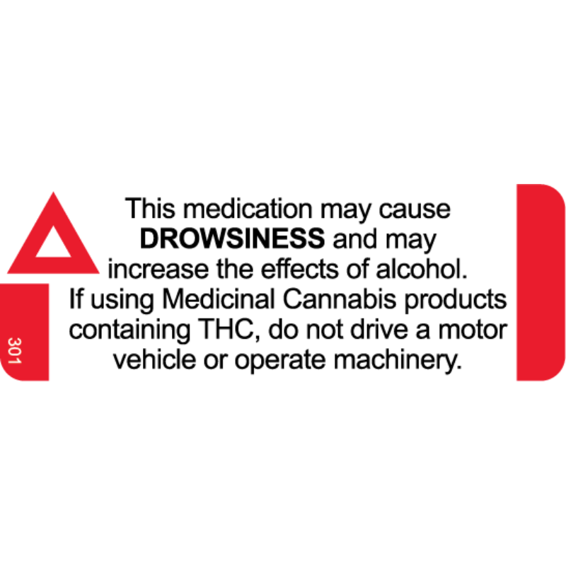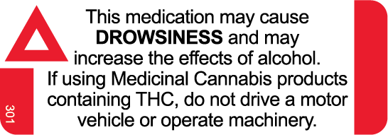 May Cause DROWSINESS (THC) 46x16mm PMS185 & Black