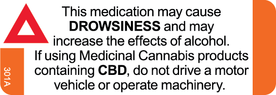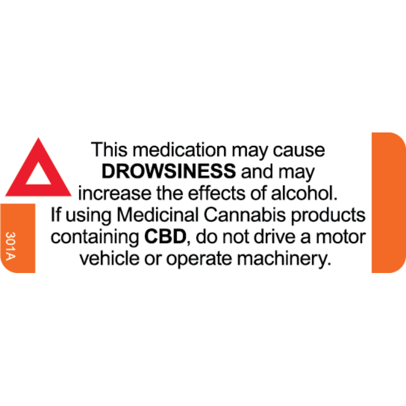 May Cause DROWSINESS (CBD) 46x16mm PMS185, 1505 & Black
