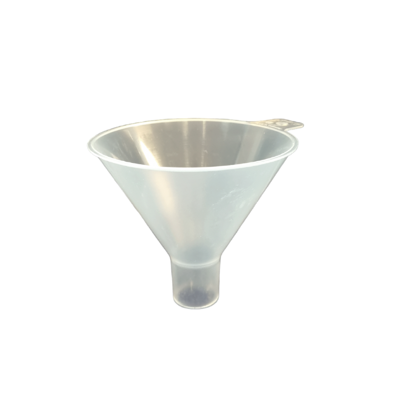 This Plastic Funnel is designed for efficient and mess-free transfer of powders and granular substances in laboratory, educational, and industrial environments. Manufactured from transparent polypropylene, it offers excellent chemical resistance, durability, and clear visibility during use. The funnel features a short, wide stem allowing for rapid material flow and reducing the risk of blockages. A steep 60-degree cone angle further enhances flow efficiency, making it ideal for transferring dry and free-flowing materials. An integrated practical handle with hanging loop provides a secure grip during use and convenient storage when not in use. Lightweight and reusable, this funnel is well suited for routine laboratory applications.