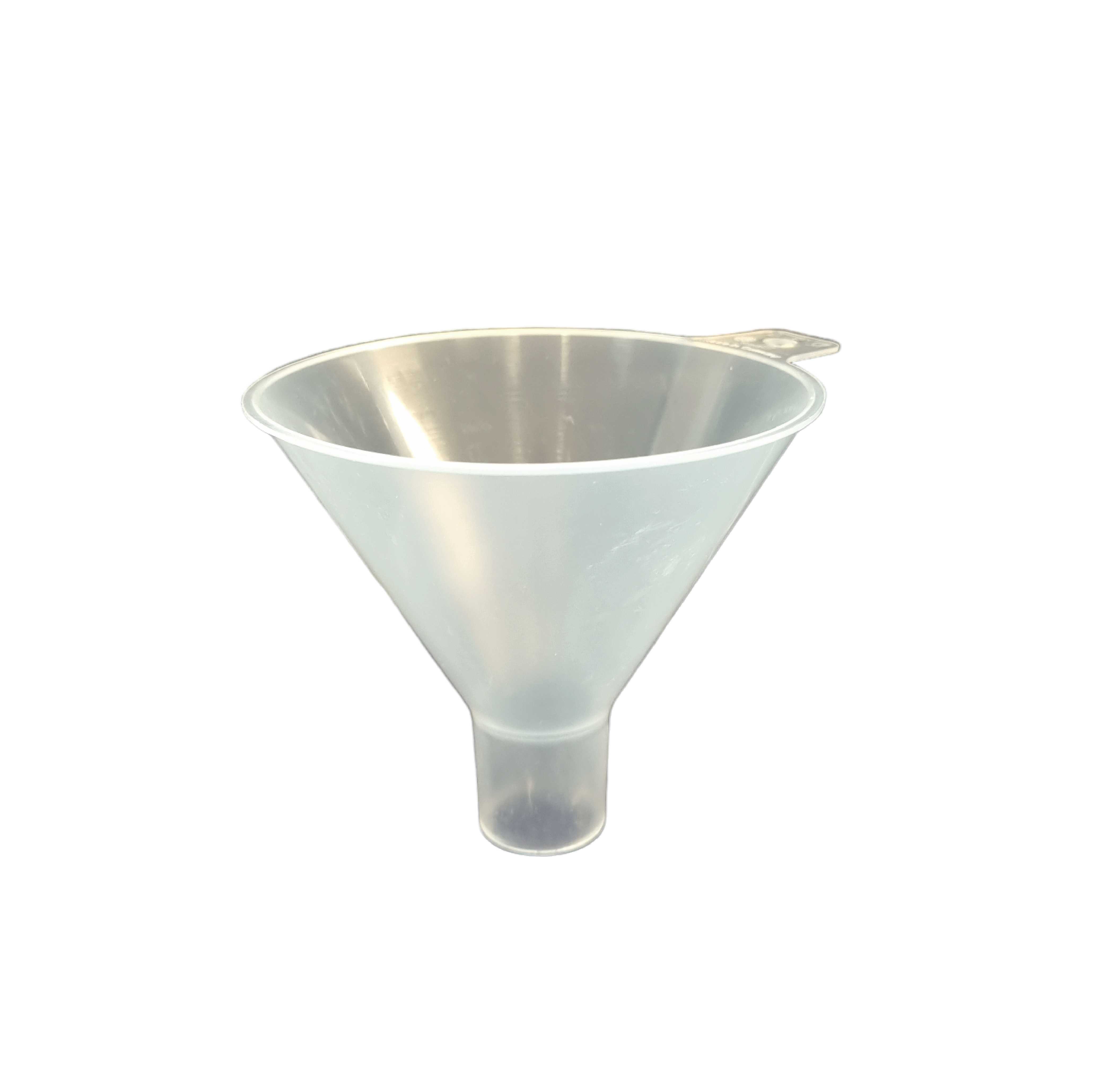 This Plastic Funnel is designed for efficient and mess-free transfer of powders and granular substances in laboratory, educational, and industrial environments. Manufactured from transparent polypropylene, it offers excellent chemical resistance, durability, and clear visibility during use. The funnel features a short, wide stem allowing for rapid material flow and reducing the risk of blockages. A steep 60-degree cone angle further enhances flow efficiency, making it ideal for transferring dry and free-flowing materials. An integrated practical handle with hanging loop provides a secure grip during use and convenient storage when not in use. Lightweight and reusable, this funnel is well suited for routine laboratory applications.