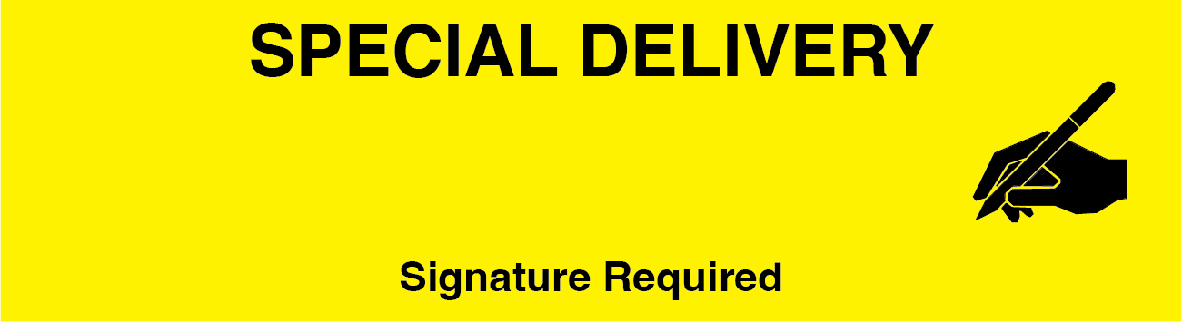 SPECIAL DELIVERY Labels 110x30mm 1,000/Roll BLACK ON FLUORO YELLOW