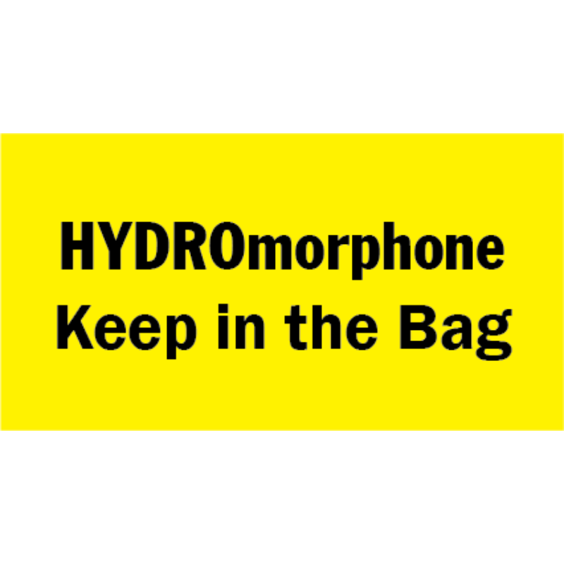 HYDROmorphone in Bag Labels 72 x 38mm label BLACK ON FLUORO YELLOW
