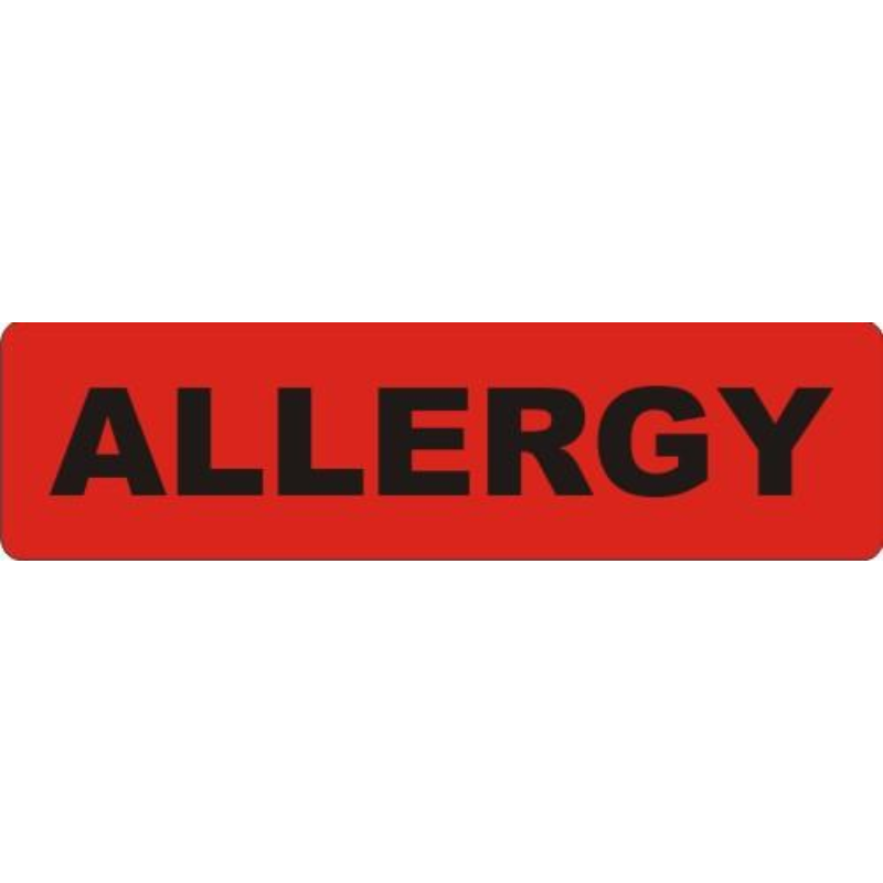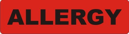 ALLERGY Labels 40 x 11mm BLACK ON FLUORO RED