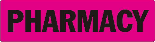 PHARMACY Labels 40 x 11mm BLACK ON FLUORO PINK