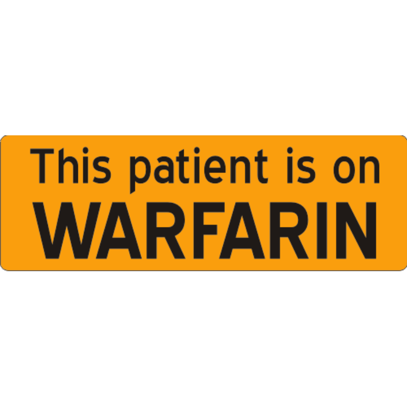WARFARIN Labels 46x16mm BLACK ON FLUORO ORANGE