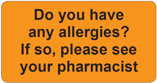 Any allergies? Labels 72 X 38 S/A LABEL BLACK PRINT ON FL ORANGE