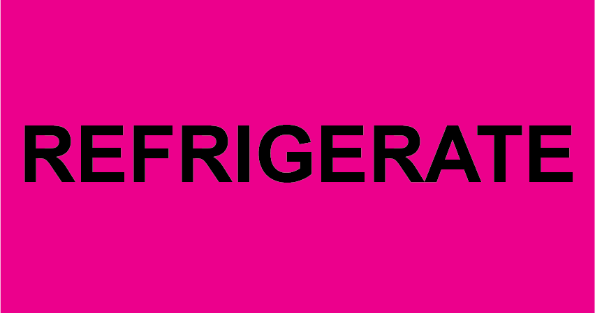 REFRIGERATE Labels 72 X 38MM BLACK ON FLUORO PINK