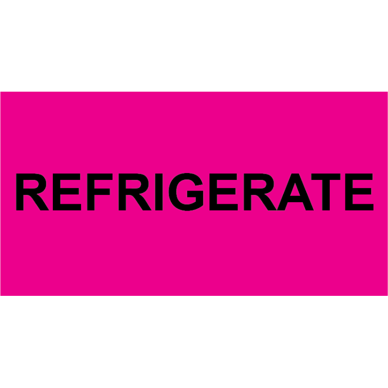 REFRIGERATE Labels 72 X 38MM BLACK ON FLUORO PINK