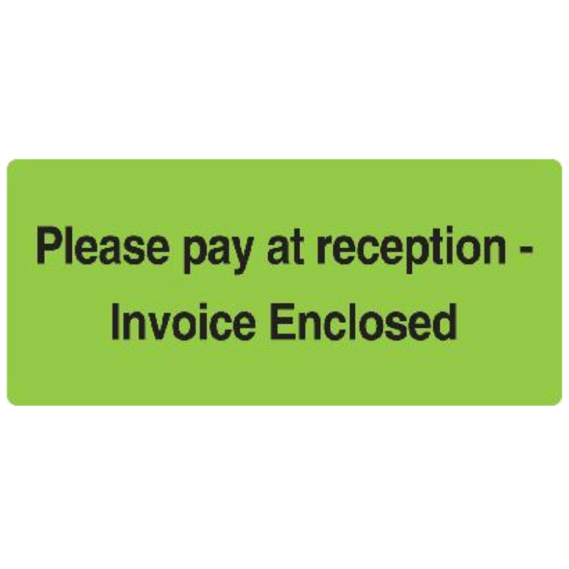 Please Pay at Reception Labels 72 X 38MM BLACK ON FLUORO GREEN