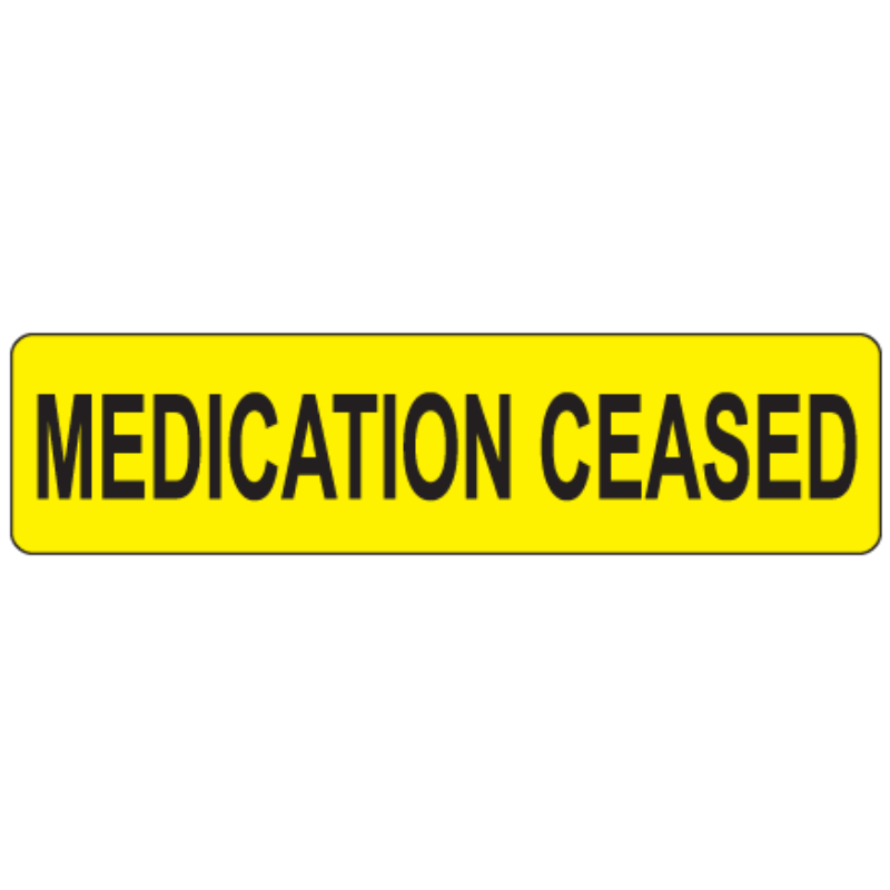 MEDICATION CEASED Labels 40 X 11MM Black on Fluro Yellow