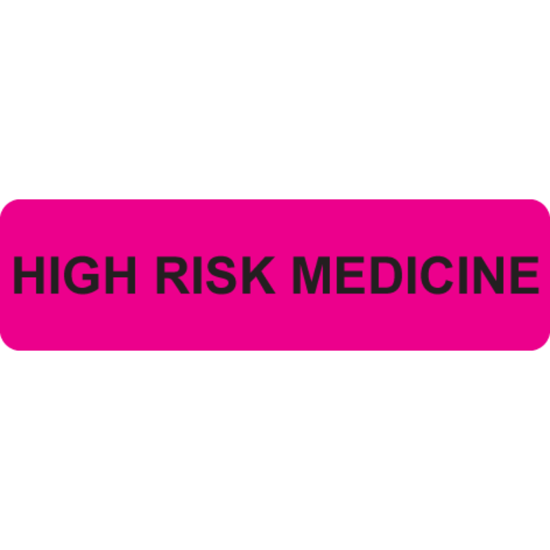 HIGH RISK MEDICINE Labels 40x11mm Black on Fluoro Pink