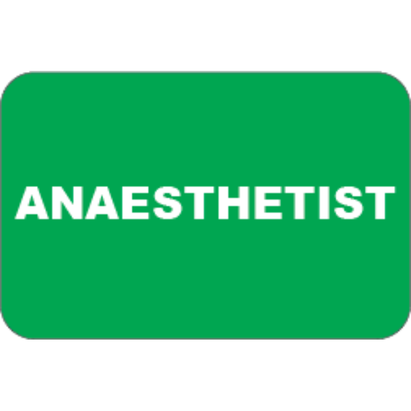 ANAESTHETIST Labels 90 x 60mm Reverse Green on White
