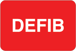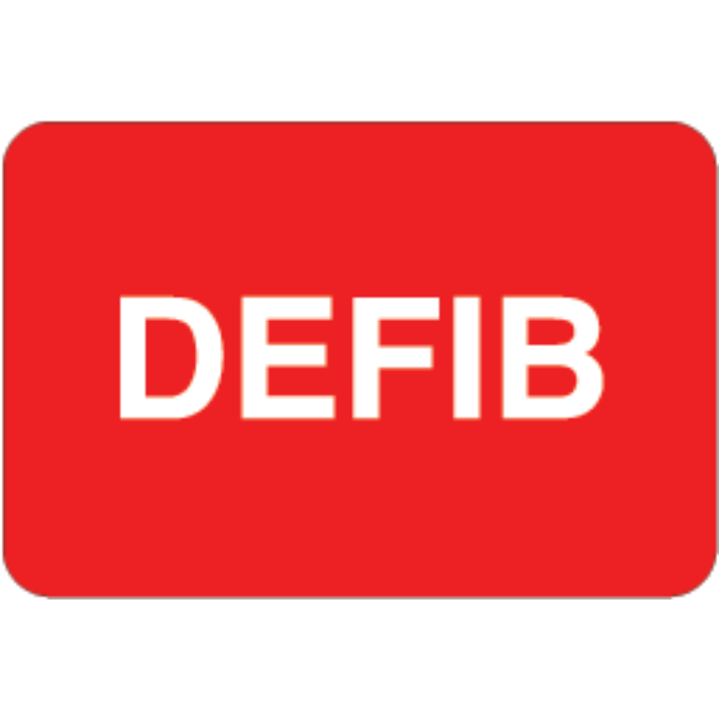 DEFIB Labels 90 x 60mm Reverse Red on Gloss White
