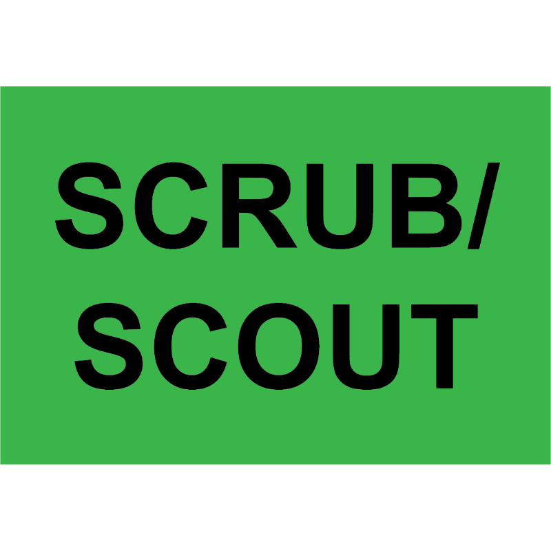 SCRUB/SCOUT Labels 90 X 60MM BLACK ON FL GREEN