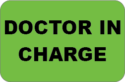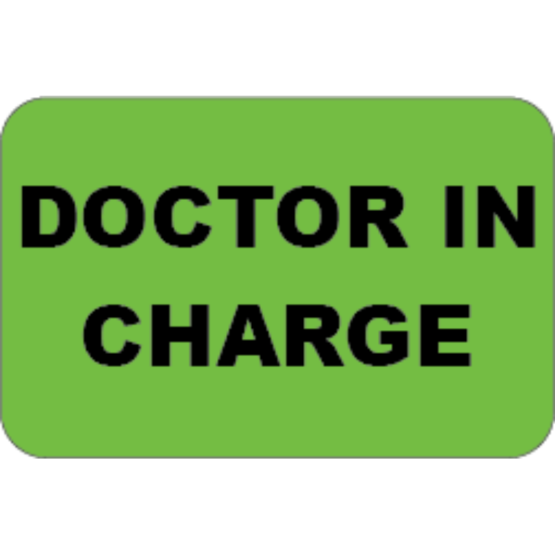 DOCTOR IN CHARGE Labels 90 x 60mm BLACK ON FL GREEN