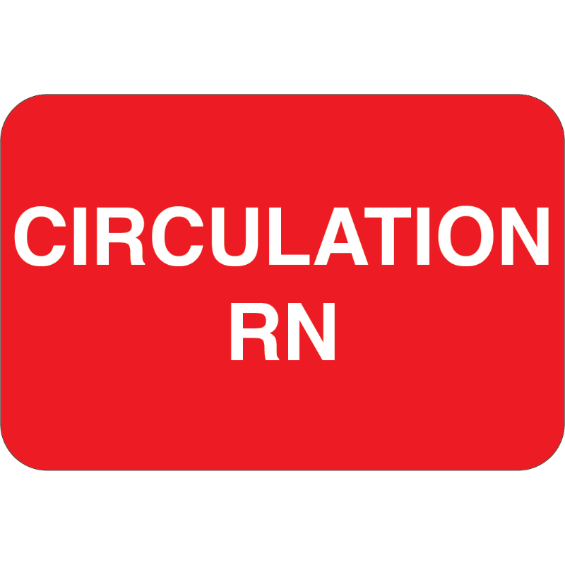CIRCULATION RN Labels 90 x 60mm Reverse Red on White