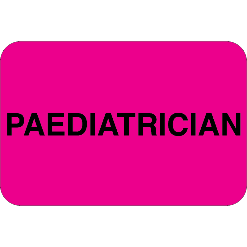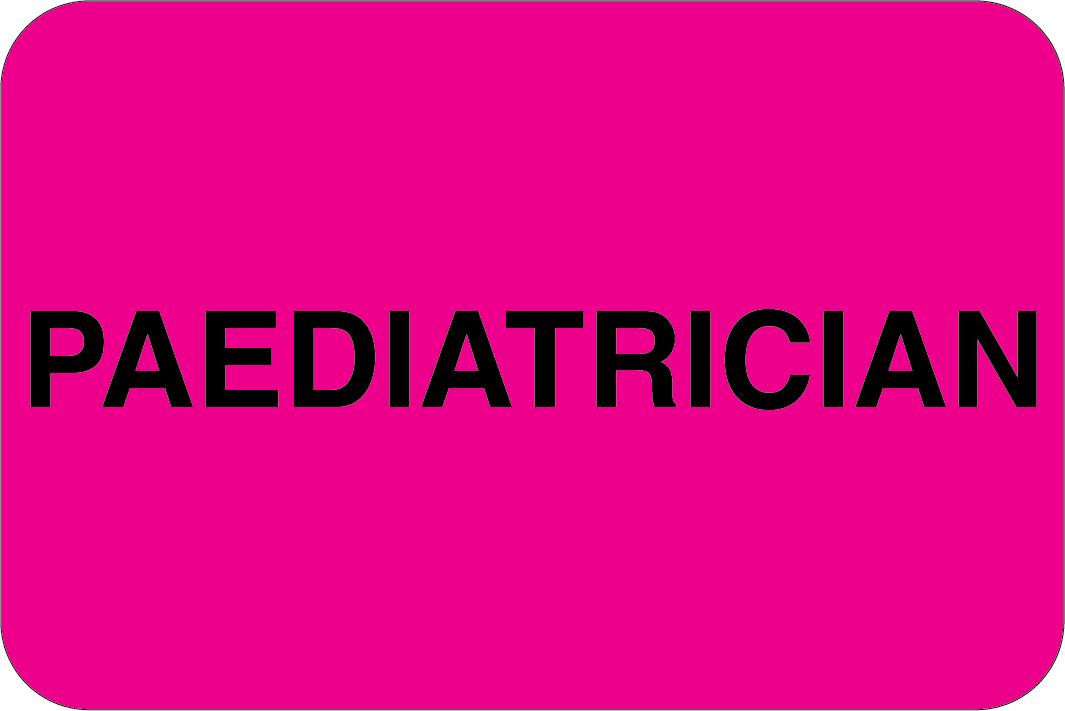 PAEDIATRICIAN Labels 90 x 60mm Black on Fluoro Pink