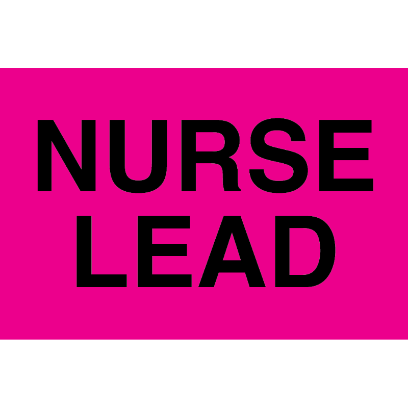 NURSE LEAD Labels 90 x 60mm Black on Fluro Pink