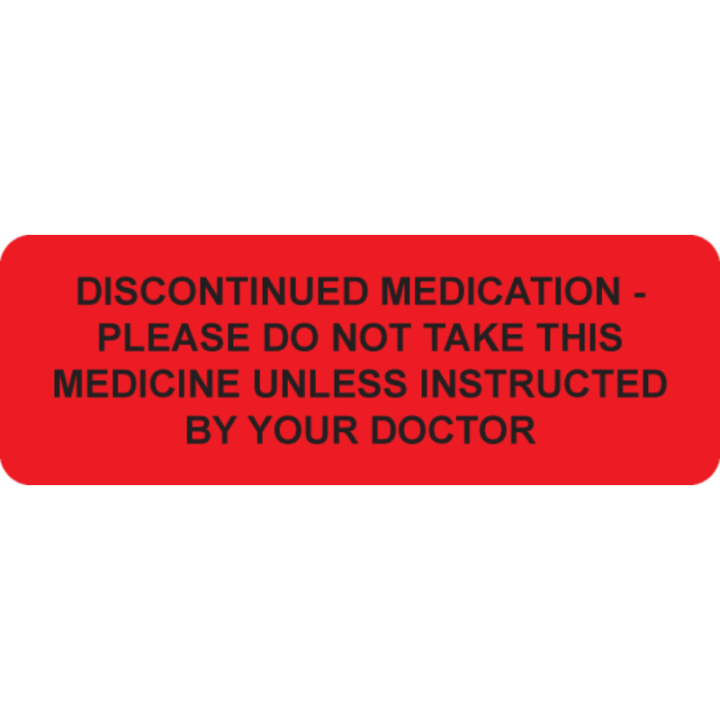 DISCONTINUED MEDICATION Labels 46 x 16mm BLACK ON FL RED