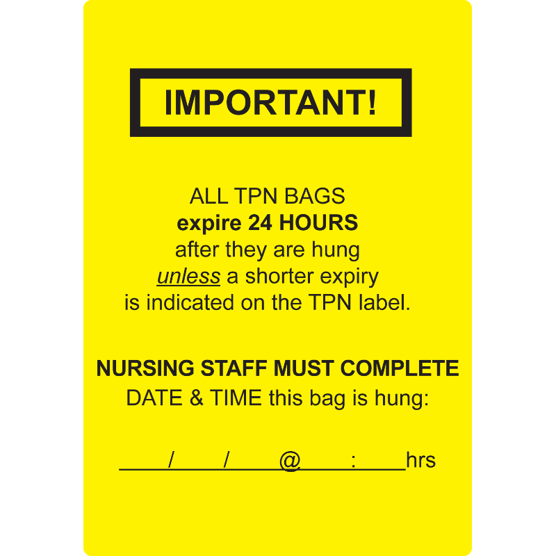 ALL TPN BAGS Labels 93 x 133mm BLACK ON FLUORO YELLOW