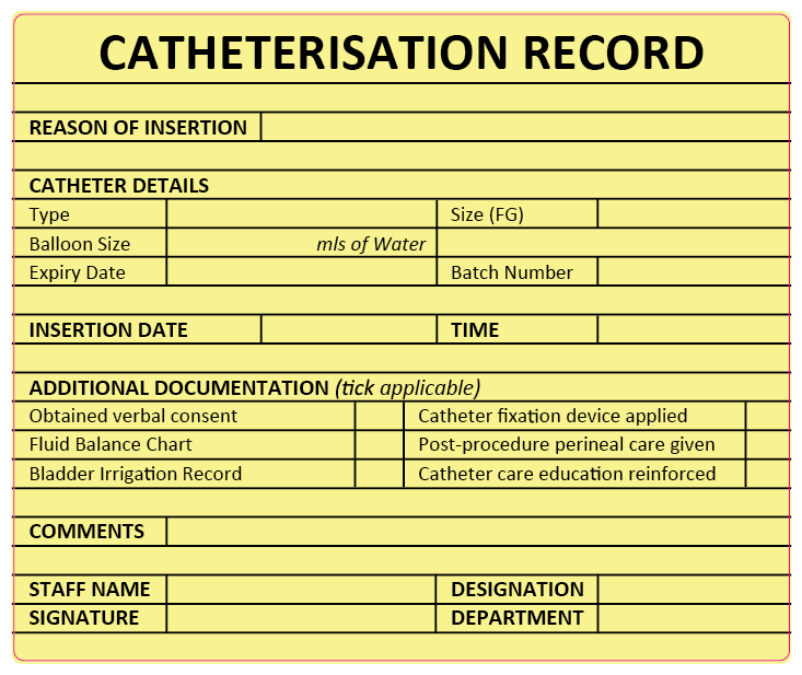 CATHERTISATION RECORD 120 x 100mm BLACK ON PMS 393u/MATT STOCK
