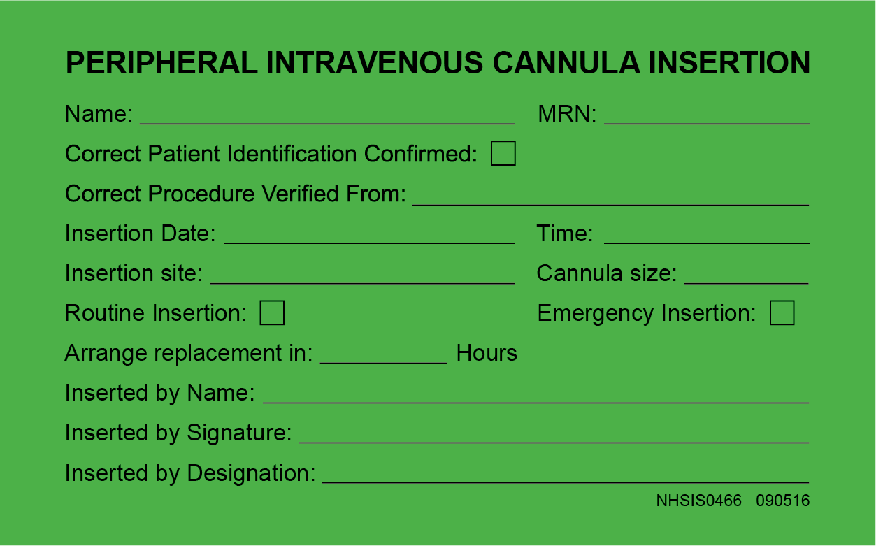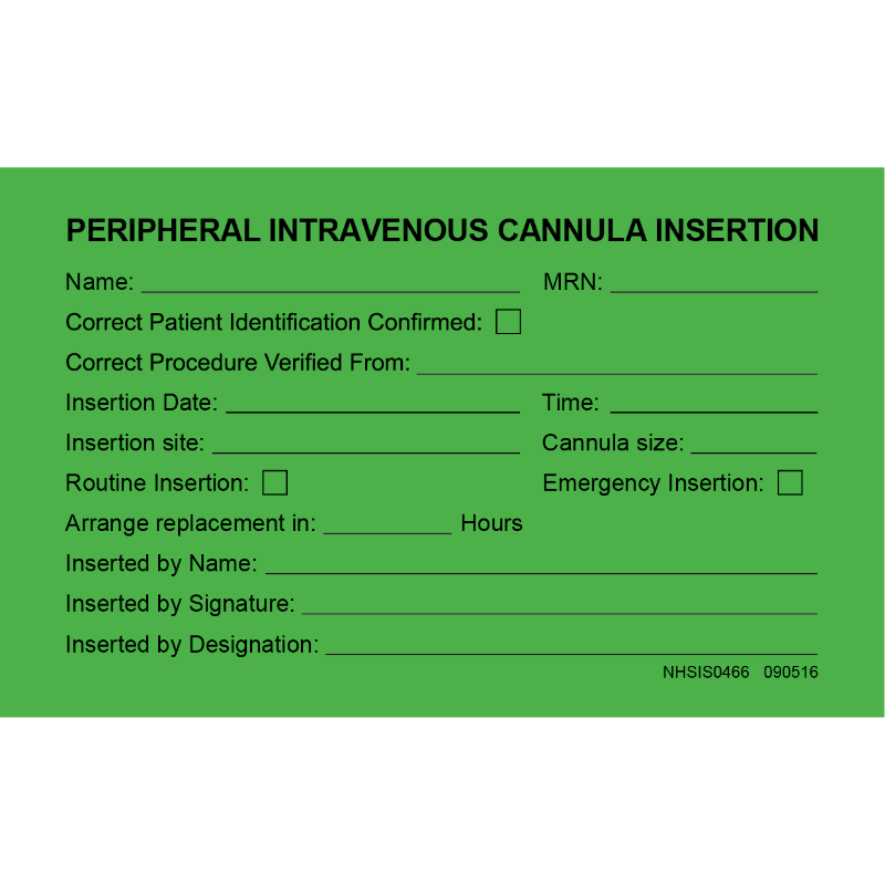 Peripheral IV Alert Labels 90 x 60mm Black on Fl. Green