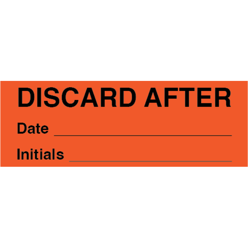 S/A LABEL "DISCARD AFTER" 46x16mm Black on Fluoro Orange