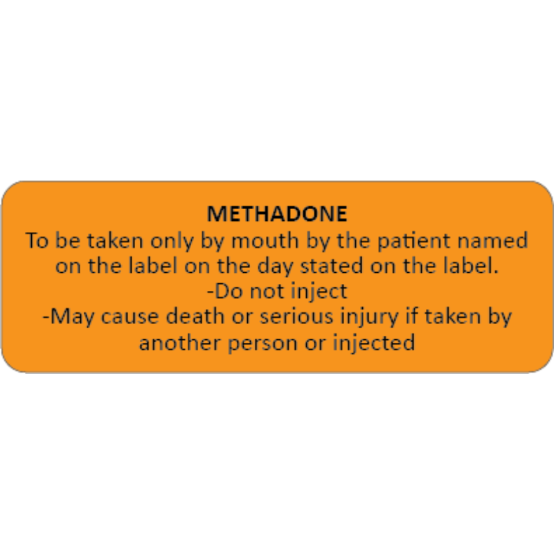 METHADONE Labels 46 X 16MM BLACK PRINT ON FLUORO ORANGE