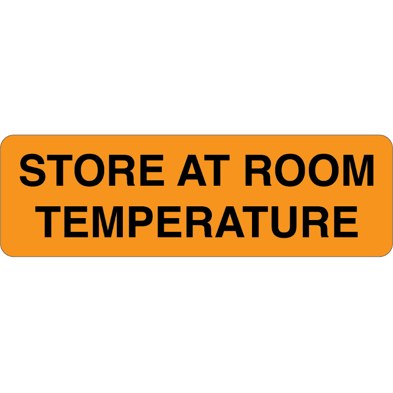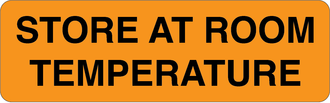 STORE AT ROOM TEMP Labels 90 X 28MM BLACK ON FL ORANGE