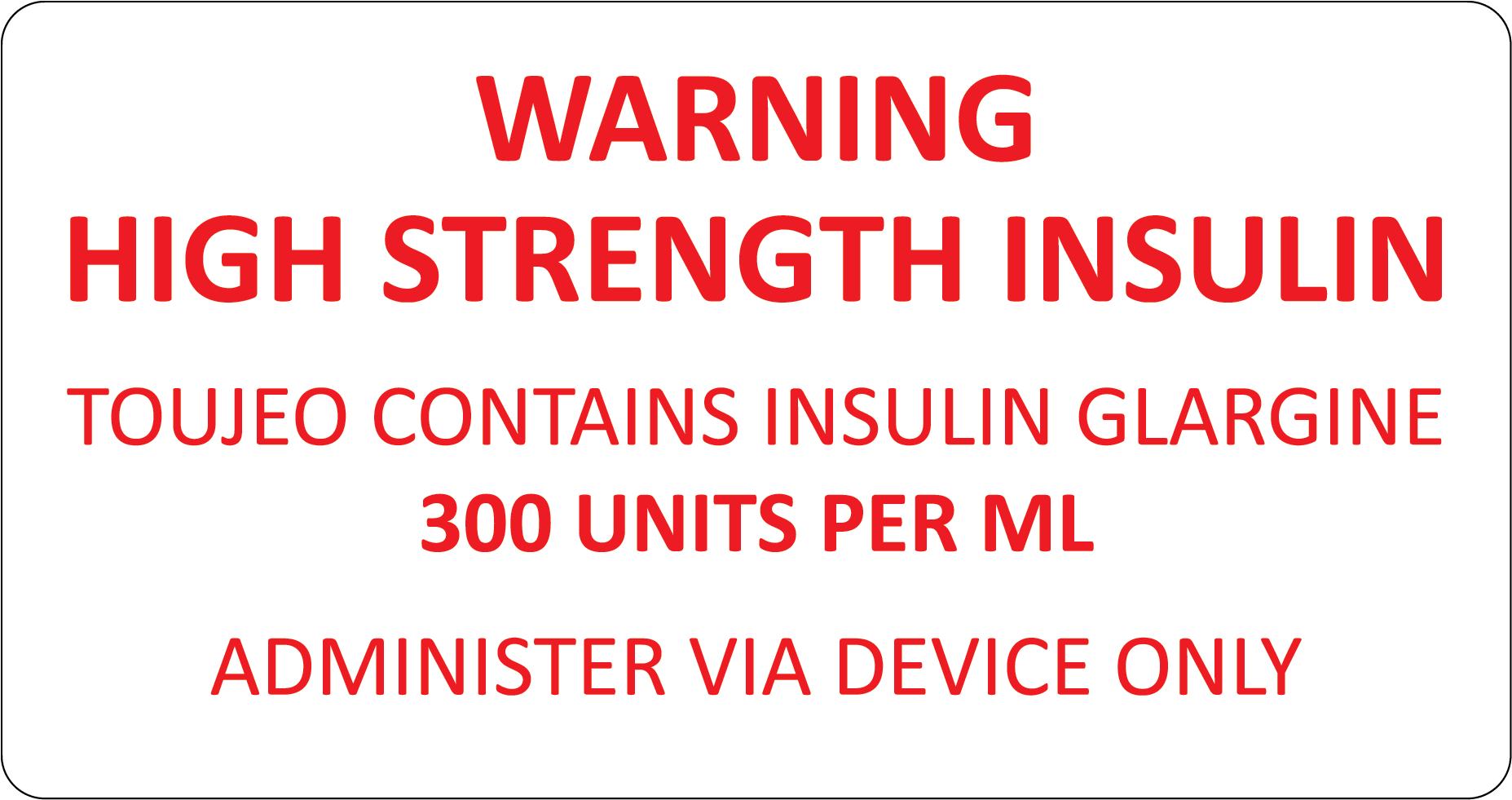 HIGH STRENGTH INSULIN Labels 72 X 38MM RED PRINT ON WHITE