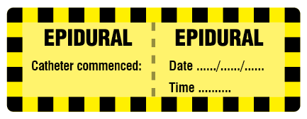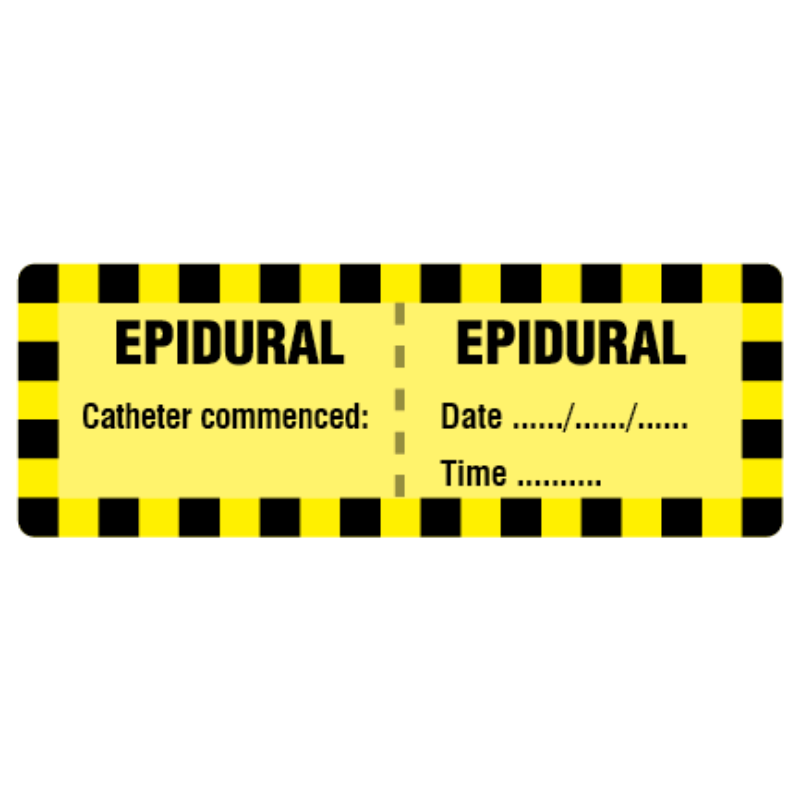 EPIDURAL Line Labels 70x25mm PANT YELLOW & BLK ON MATT PERM