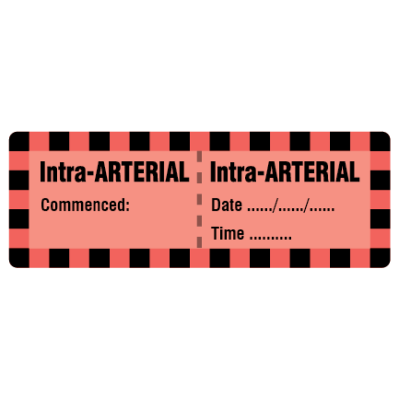 Intra-ARTERIAL Line Labels 70x25mm RED 1787U & BLK ON MATT PERM