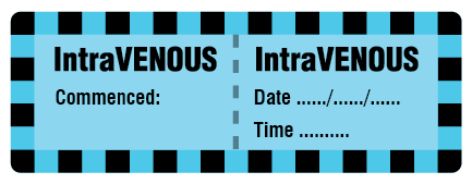 IntraVENOUS Line Labels 70x25mm BLUE 2985U & BLK ON MATT PERM
