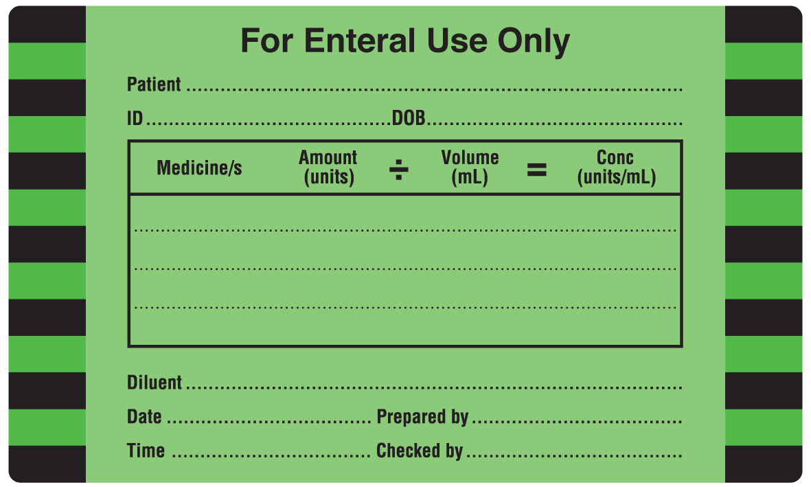 Enteral Container Labels 100x60mm GREEN 361U & BLK ON MATT PERM