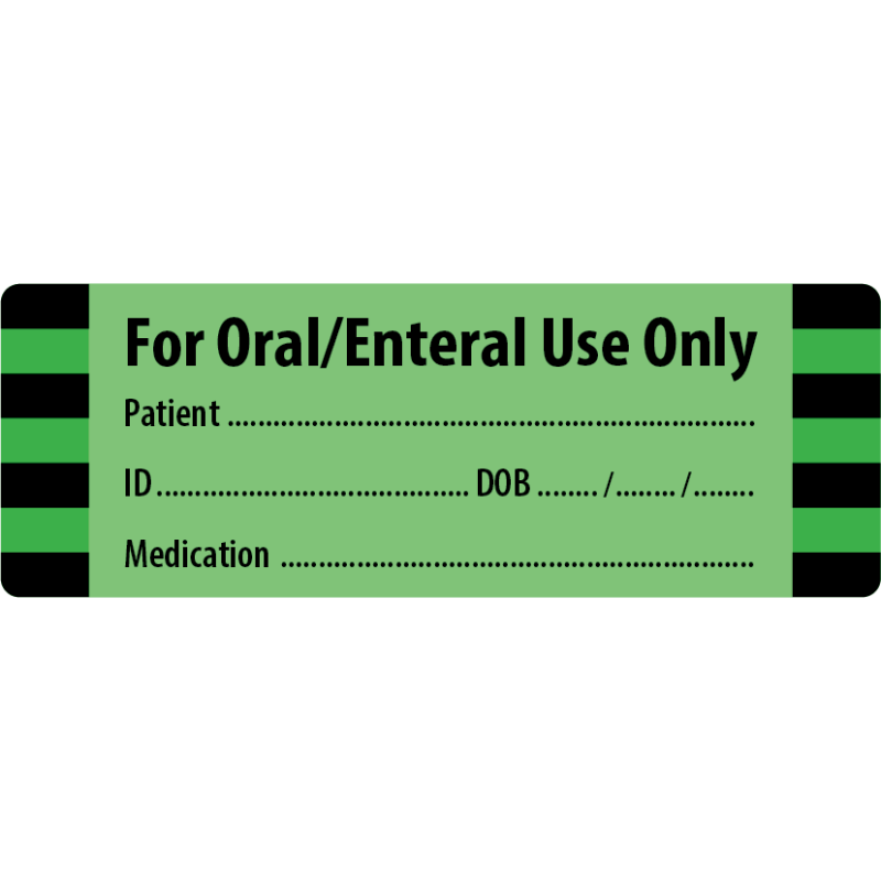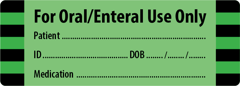 For Oral/Enteral Use L. Labels 70x25mm GREEN 361U & BLK ON MATT PERM