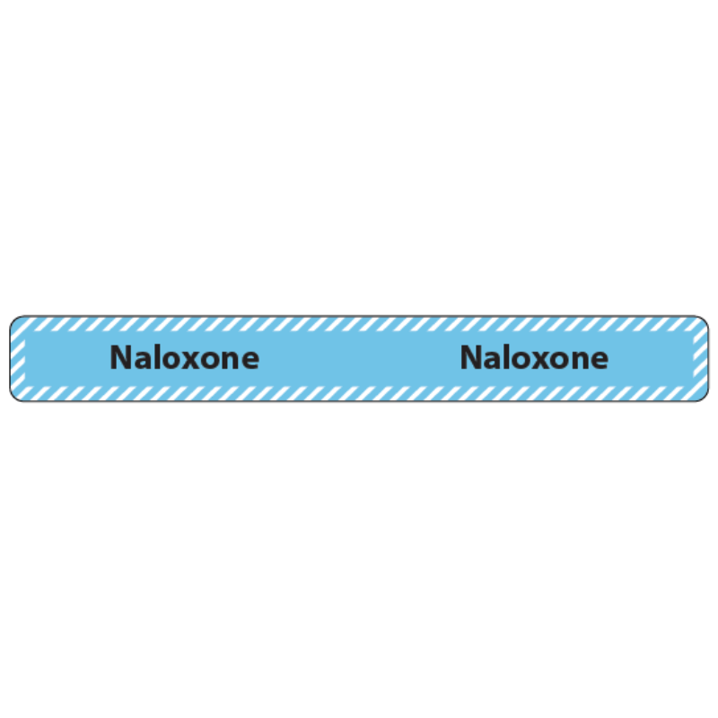 Naloxone Line Labels 98mm x 12mm 297 BLUE & BLACK. GLOSS PERM