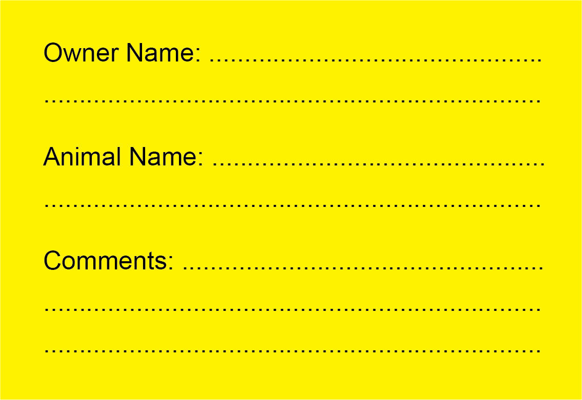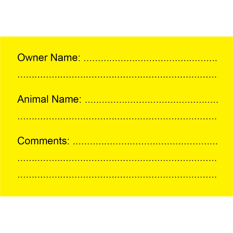 Vet Label "IDENTITY" 90 X 60MM BLACK PRINT ON FLUORO YELLOW