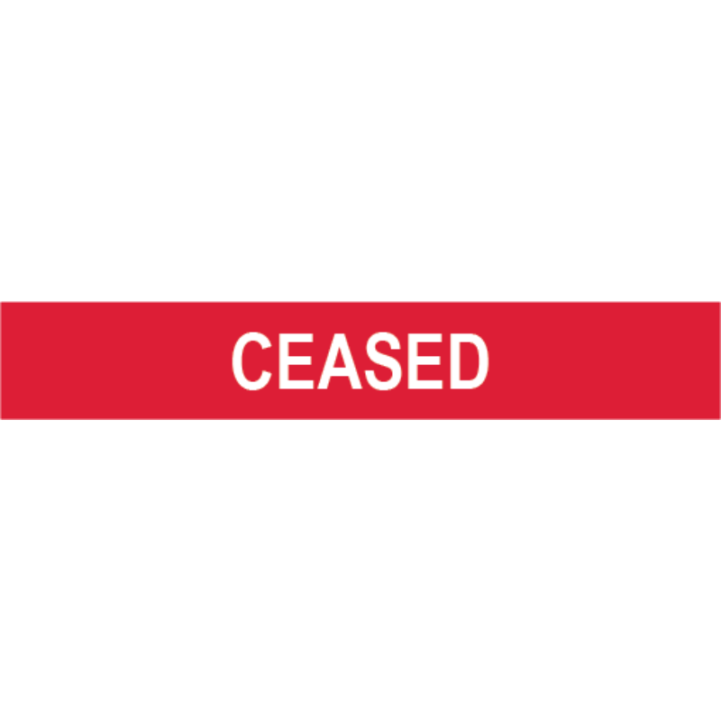 CEASED Labels 43x7mm GLOSS/PERM RVSE RED 199 ON WHITE