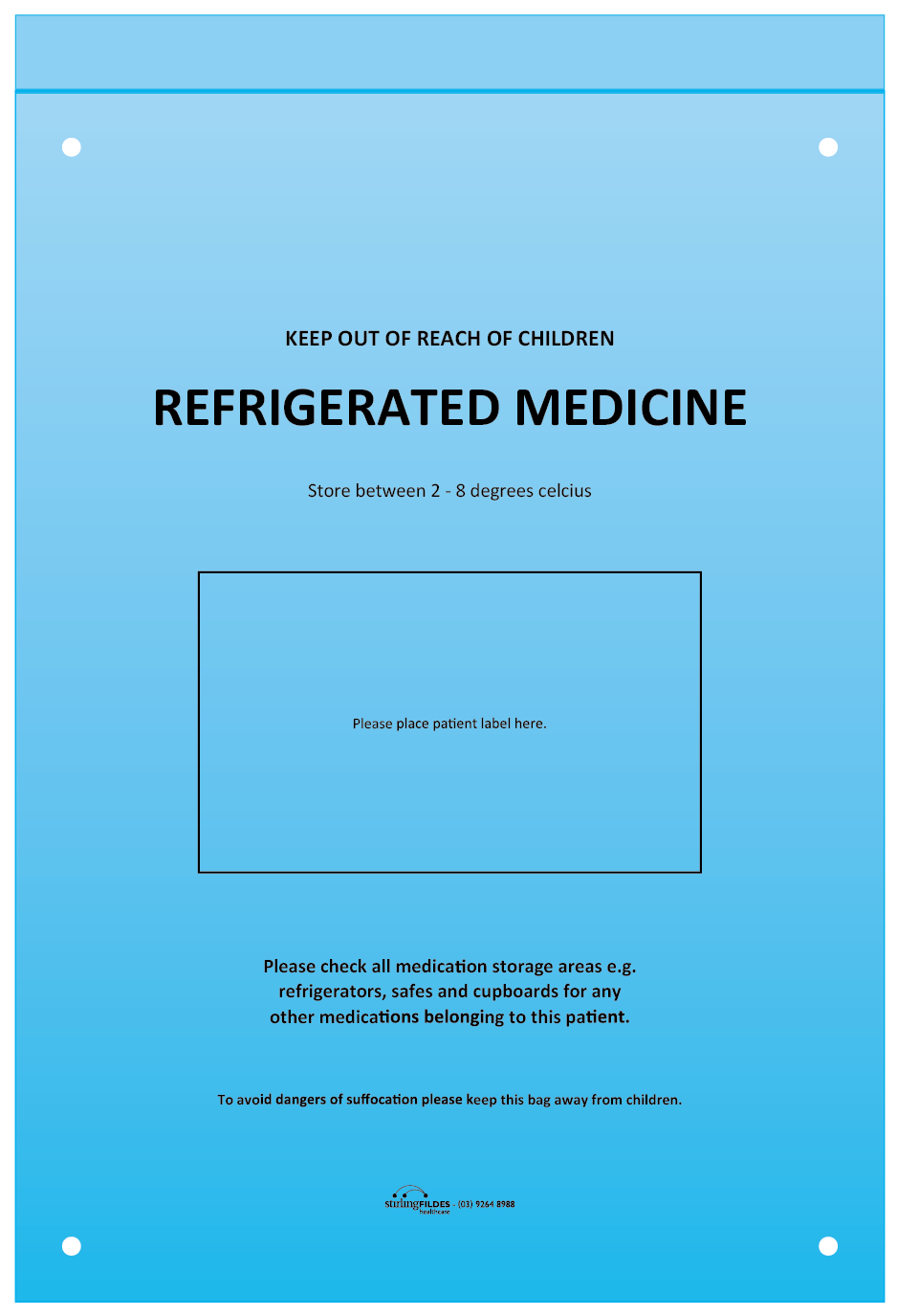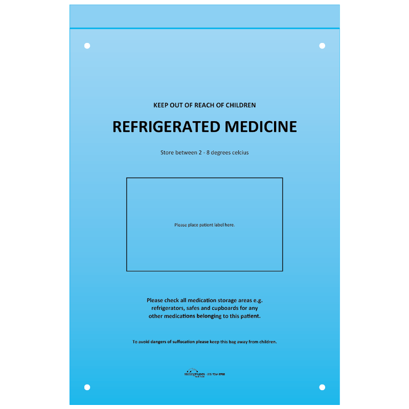 Promote a safe and consistent approach to managing your patient’s Refrigerated medications on arrival and optimise care with our clearly identifiable transparent Blue resealable bag.