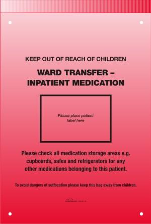 Red resealable bag specifically designed to be used when patients are transferring between wards to allow staff to identify and handover medications belonging to the patient.
