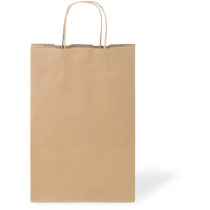 These landscape brown bags with a twist handle hold up to 13kg. Paper bags are recyclable, compostable and reusable.