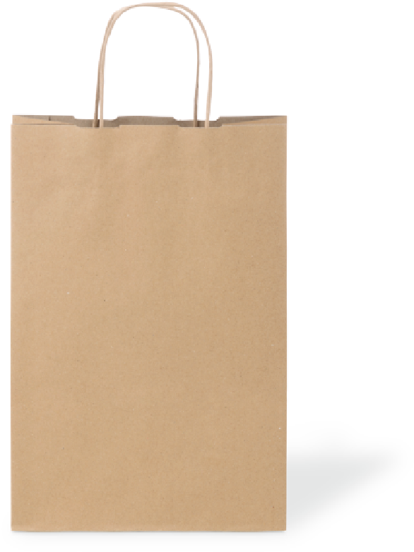 These landscape brown bags with a twist handle hold up to 13kg. Paper bags are recyclable, compostable and reusable.
