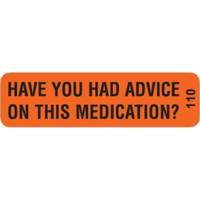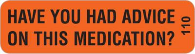 HAD ADVICE ON THIS MED? Labels 40 x 11mm Black on Fluoro Orange