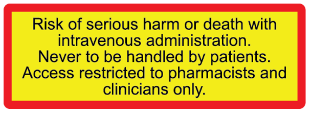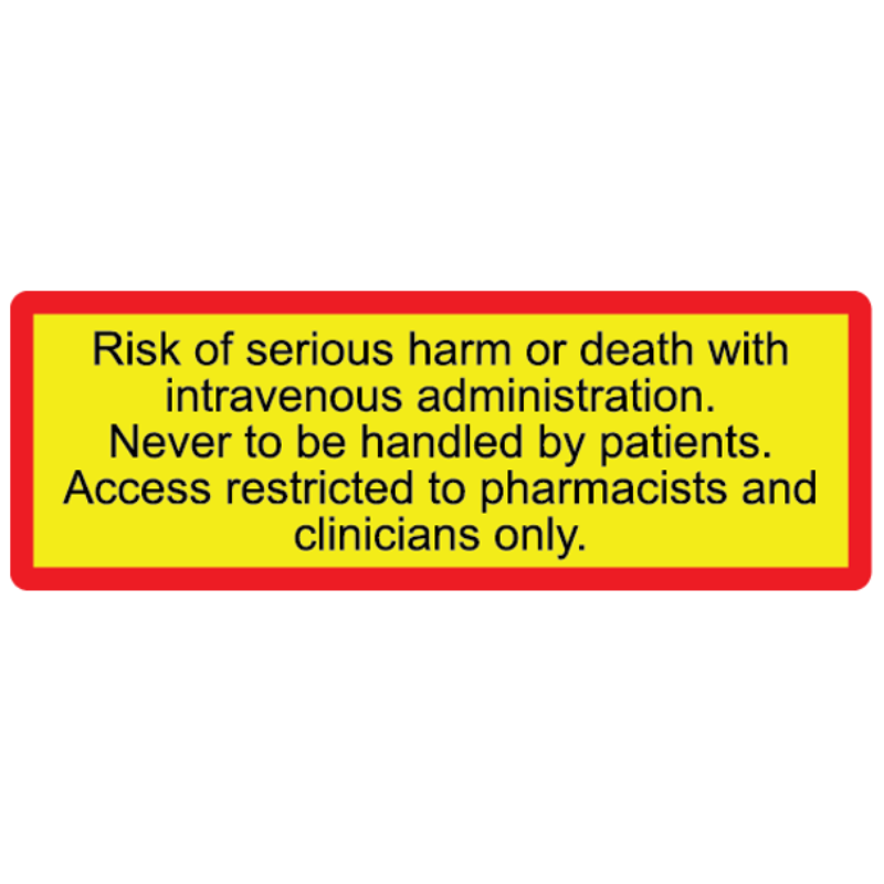 Risk of Harm IV Administration 46 x 16mm Red and Black on Fl Yellow